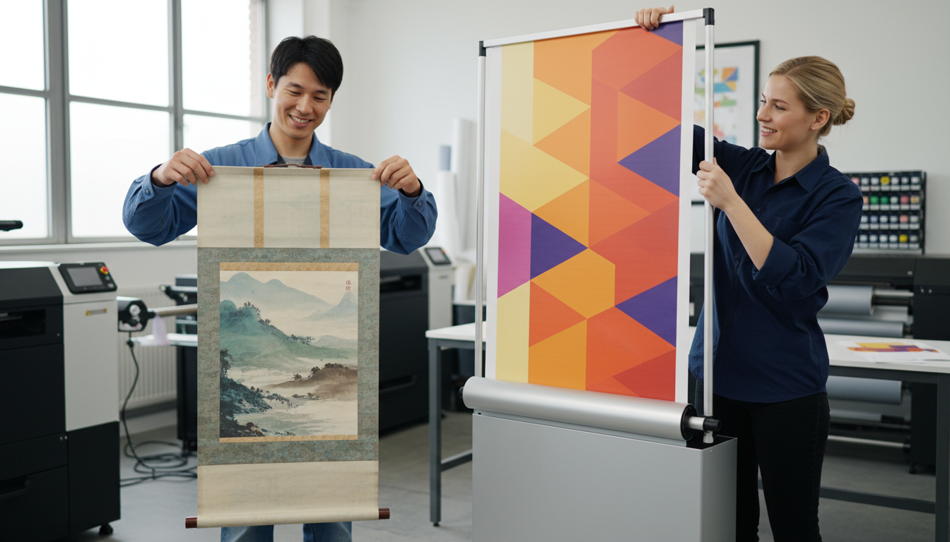 Scène 1 : une collectivité prépare une exposition itinérante dans trois médiathèques. Les équipes choisissent des kakémonos textiles suspendus pour l’entrée et les zones calmes, puis des roll up à l’accueil pour les informations pratiques qui changent selon le lieu. Résultat : un parcours lisible, un montage rapide, et une scénographie plus légère.